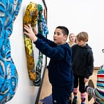 - Groep 1, 2 en 3 (Kunst in je kop): Soms slaan de leerlingen het op in het hoofd, soms verbeelden ze de herinnering aan een kunstwerk in een klein werk. Zo verzamelen ze tijdens de rondleiding een tas vol en aan het eind is er een korte workshop waarop ze een eigen kroon beplakken met hun herinneringen. Ze lopen het museum uit met een feesthoed op vol Stedelijk herinneringen, zichtbaar op het hoofd opgeplakt en onzichtbaar in het hoofd opgeslagen. Klik hier als je meer wilt weten over het programma of als je het Stedelijk Museum wilt bezoeken.